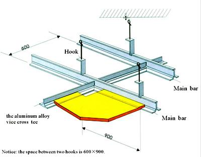 The measure of area where to install the aluminum alloy frame and the gypsum board should be more than 200 square meters,and the broad of the corridor should be more than three meters,and the size of the gypsum board is 600×600